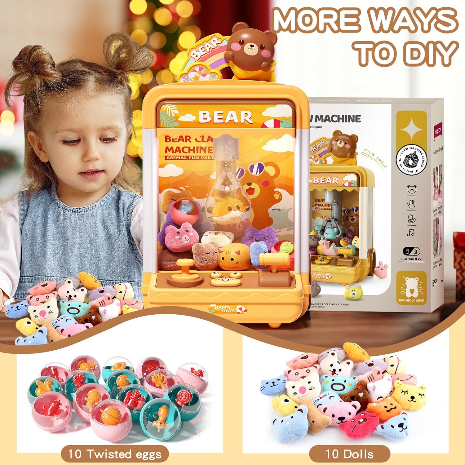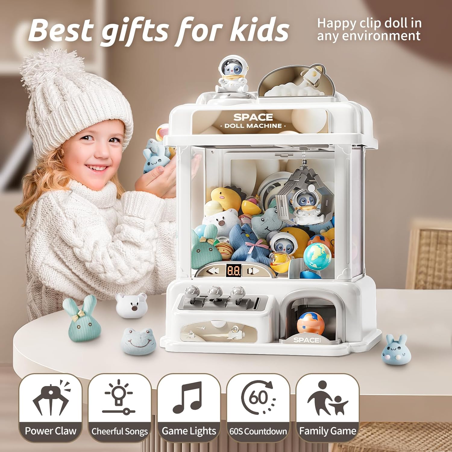 Step right up, little gamers! Meet the Bear Kids Claw Machine, your very own mini arcade filled with lights, sounds, prizes, and smiles. With its adorable Milk Tea Bear design, glowing LED lights, and cheerful music, this isn’t just a toy. It’s a whole world of fun packed into one little cup!
